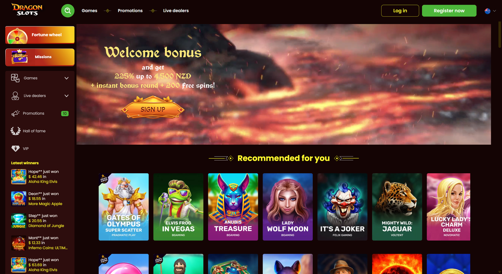 DragonSlots Casino stands out in the New Zealand online gaming scene with its dragon-themed atmosphere, frequent promotions, and an extensive range of international software providers. The platform combines immersive design with reliable performance, offering a clean interface, fast load times, and smooth navigation across both desktop and mobile devices.